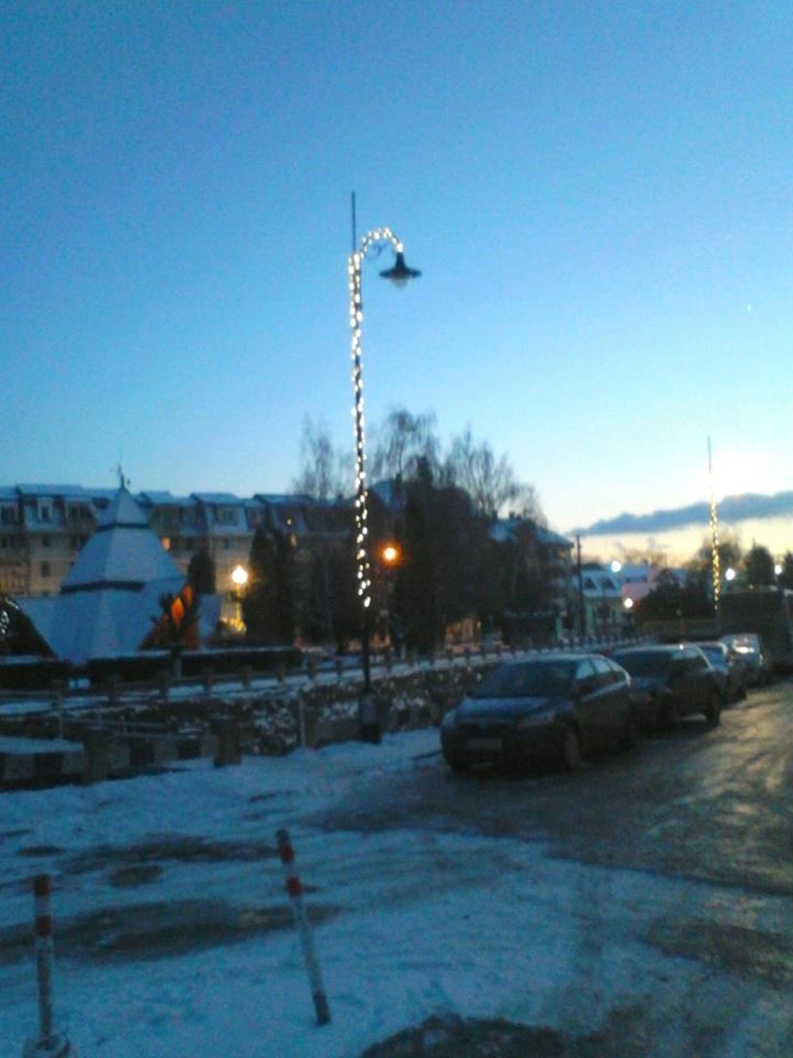 Nu putem mere nicăieri in weekend, visam la un Sf. Gheorghe sau Brașov pe cont propriu, dar pleacă autobuzul prea devreme, fiindcă trebuie să ajungă la Târgu Mureș. Totuși, e aproape St. Gyorgy și am auzit că se poate și cu taxiul. Ne mai gândim până atunci. S-au aprins luminile de Crăciun în seara asta în Covasna, dar am doar o poză cu stâlpii de iluminat îmbrăcați în acadele. Bradul cred că-l văd mâine luminat. Am văzut în poza cu tăblița de pe Strada Meșteșugarilor că e Mesterek utca, de aici vine cuvântul meșter in română, zic eu. No, fac o pauză aici până merg la net, szia.