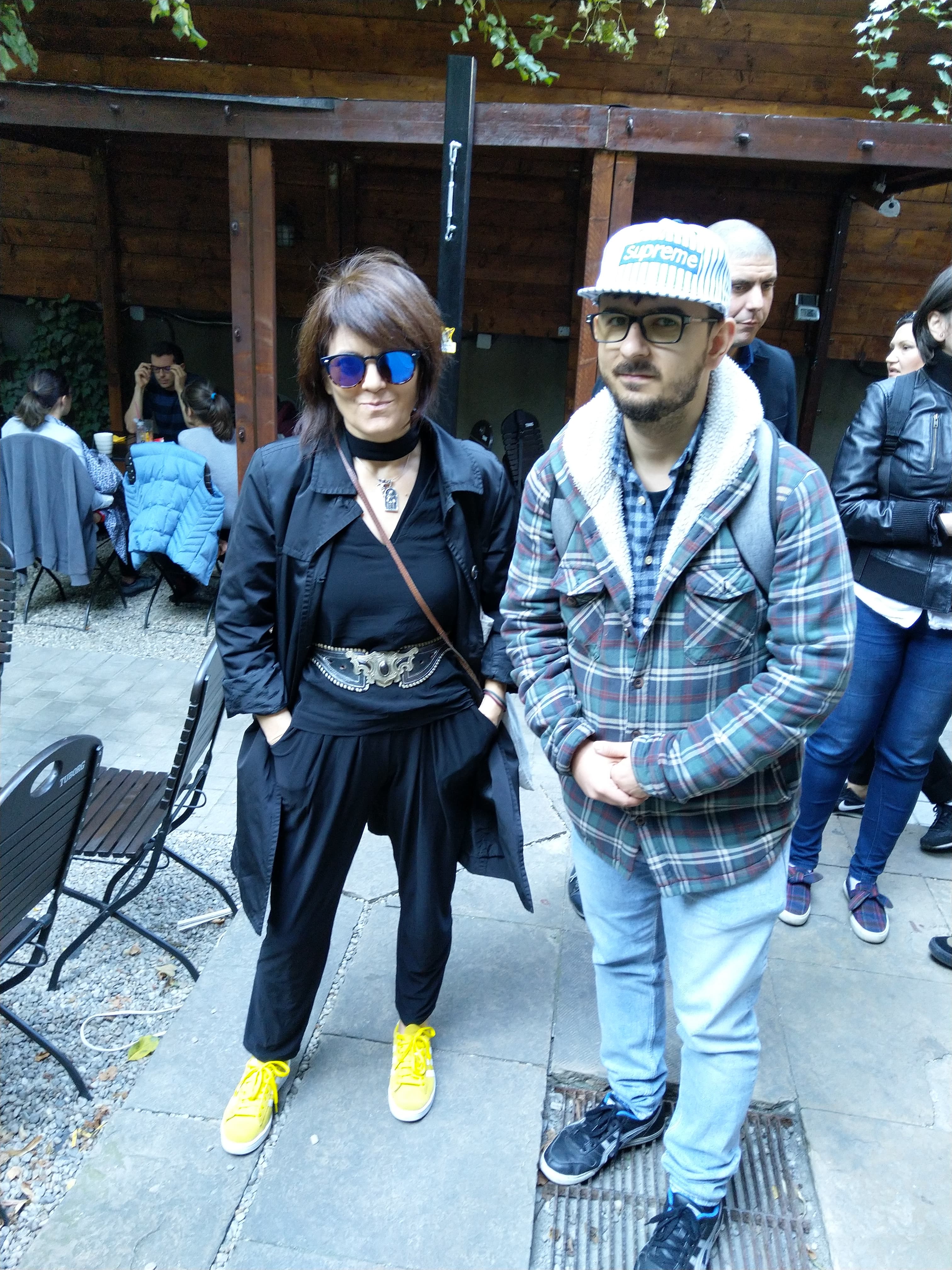 Andrei Zbîrnea alături de poeta și antrenoarea Mornin’ Poets Miruna Vlada