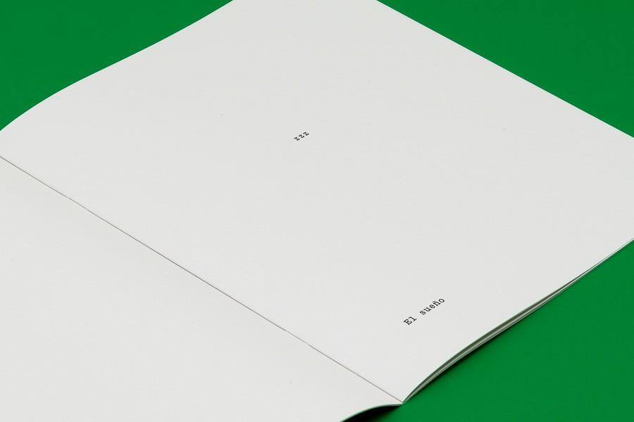 (O pagină din volumul rrr (1972) al lui Carrión, republicat în 2016 de Boabooks. Un poem concret intitulat Visul, format din trei litere: „zzz”. În aceeași epocă, americanul Aram Saroyan a publicat o „poezie minimală” formată dintr-o literă „m” cu patru picioare.)