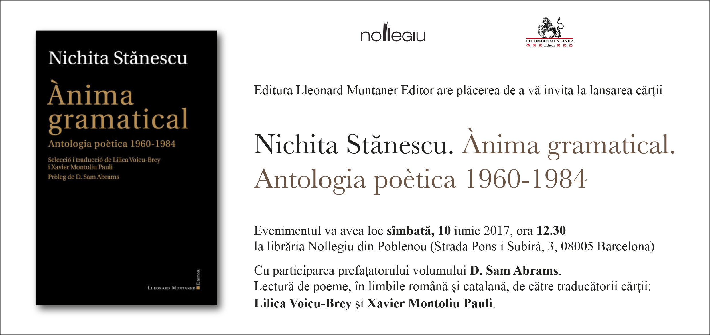Editura Lleonard Muntaner-Editor din Mallorca a publicat noul volum Ànima gramatical. Antologia poètica 1960-1984 (în colectia sa de poezie La Fosca, nr. 31) al lui Nichita Stănescu, în traducere în limba catalană de Lilica Voicu-Brey și Xavier Montoliu Pauli, și cu o prefață semnată de criticul catalan de originea americană D. Sam Abrams.