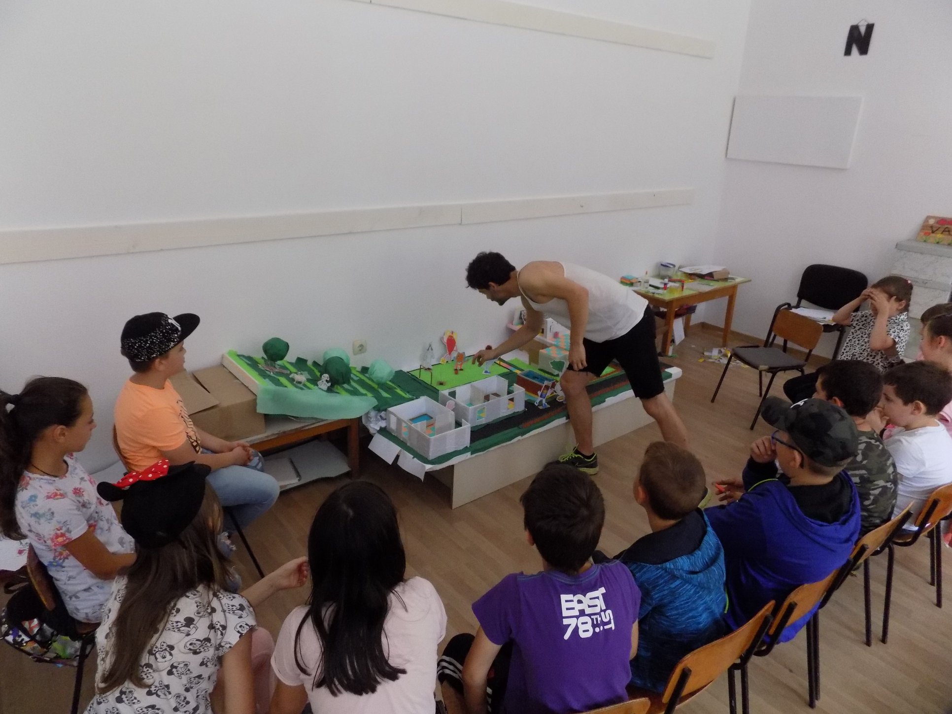 Aceștia și-au creat personaje, care fiecare are o poveste, un trecut, iar eu am creat un soi de „complex” care cuprinde o bucățică dintr-o școală (o sală de clasă, hol), zonă de agrement (teren de sport, bazin de înnot, zonă verde, deal cu copaci), și o mică zonă rezidențială, anume 2 case. În acest complex, povestea comună a personajelor este creată împreună, fiecare participând în mod direct cum poate și dorește. Dorim să vedem care este viața la școală și în afara ei, iar aceste povești sunt filmate pentru uz ulterior. Doamna Herța se ocupă mai mult de partea de discuție, ajutându-i pe copiii prezenți să-și spună părerea, să discute între ei, să ajungă la diferite decizii prin cooperare și consens și să aplice la nivel de personaje cele vorbite și decise.