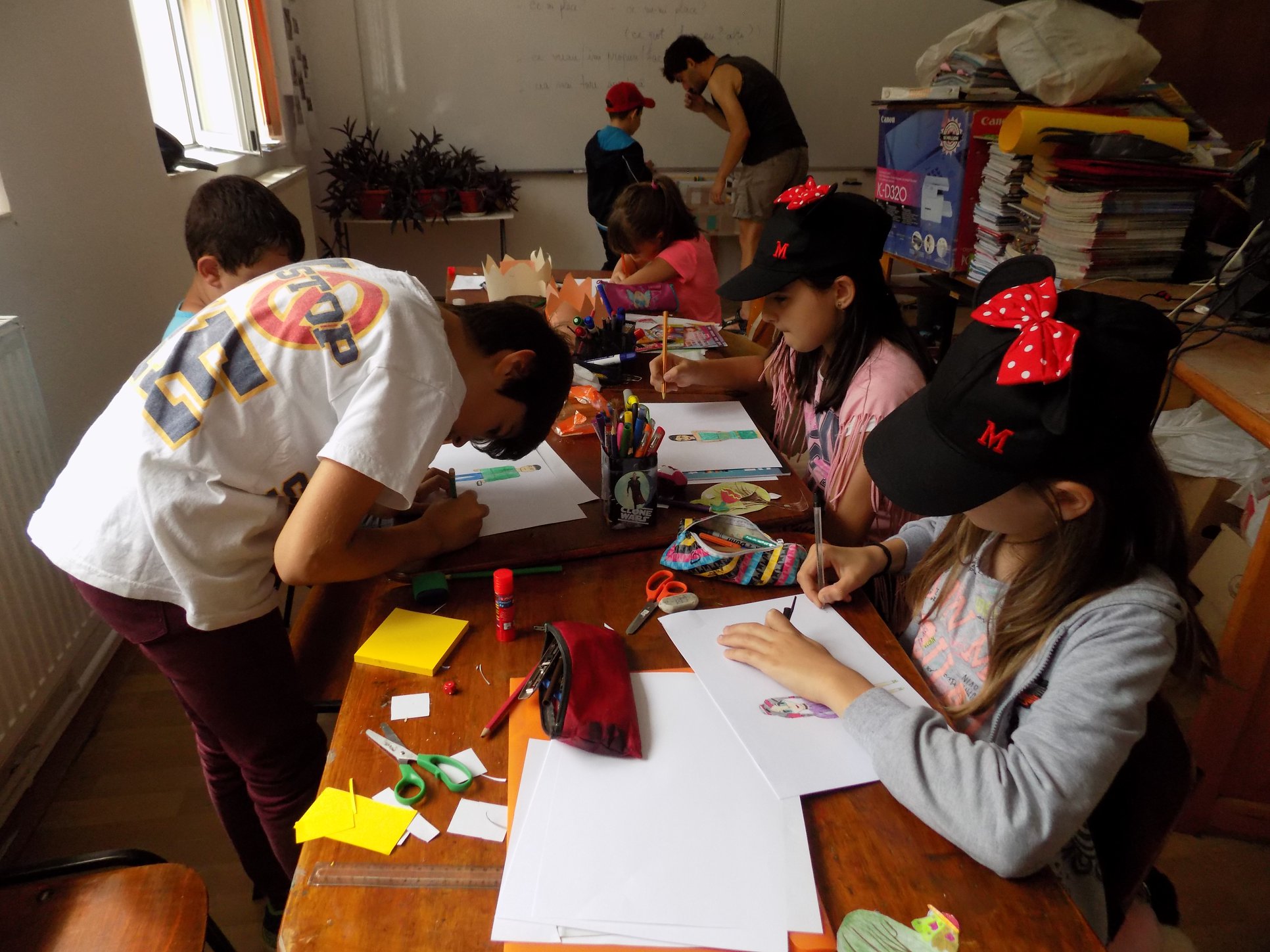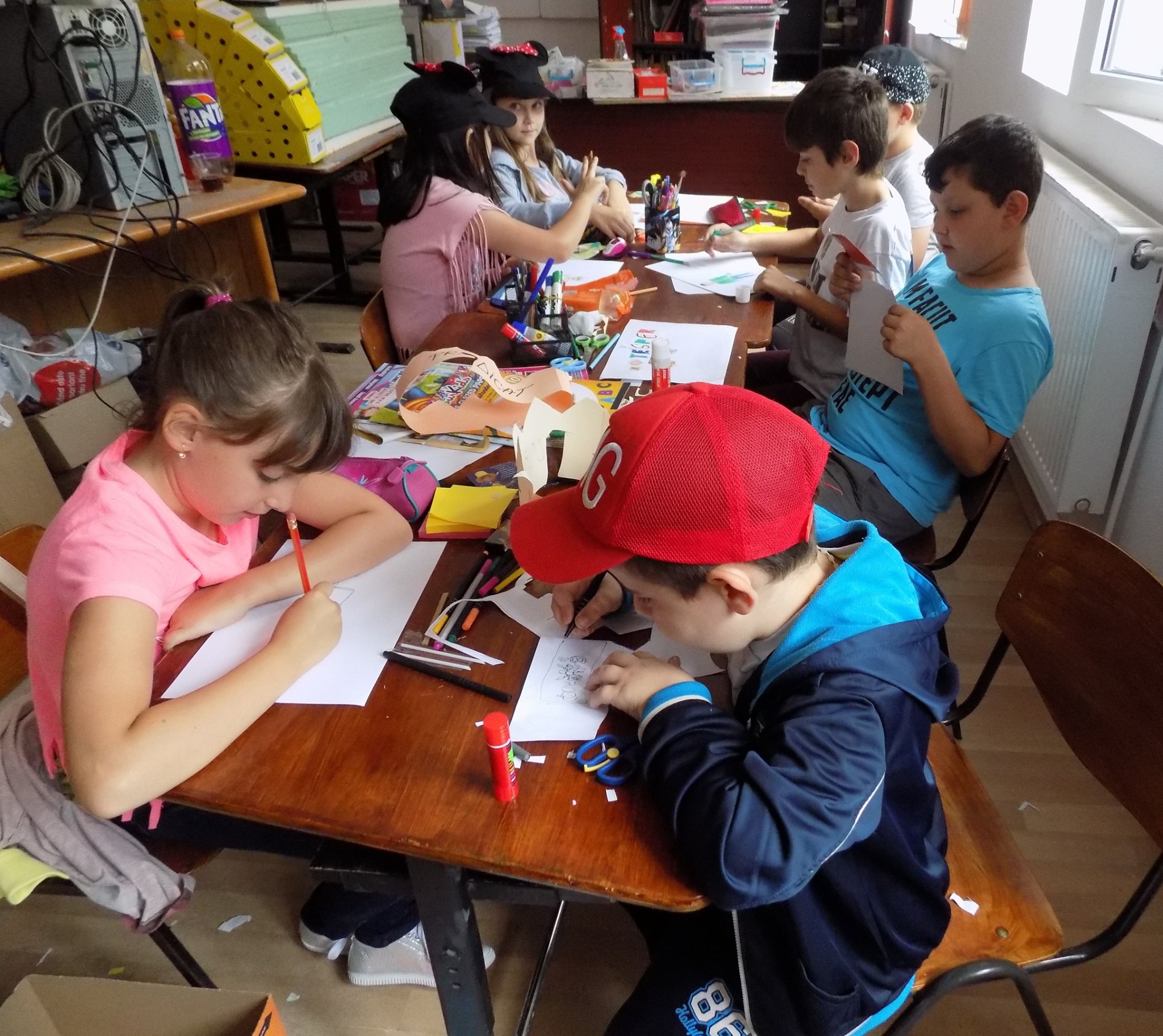 Apoi, la rezidența pe care o am eu, copiii sunt cu adevărat interesați de ceea ce facem, pentru că pe lângă că au posibilitatea de a interacționa între ei, au și posibilitatea de a-și construi o anumită lume. Cui nu-i place să deseneze sau să decupeze una alta individual și să vadă că munca fiecăruia își are un scop la nivel comun?